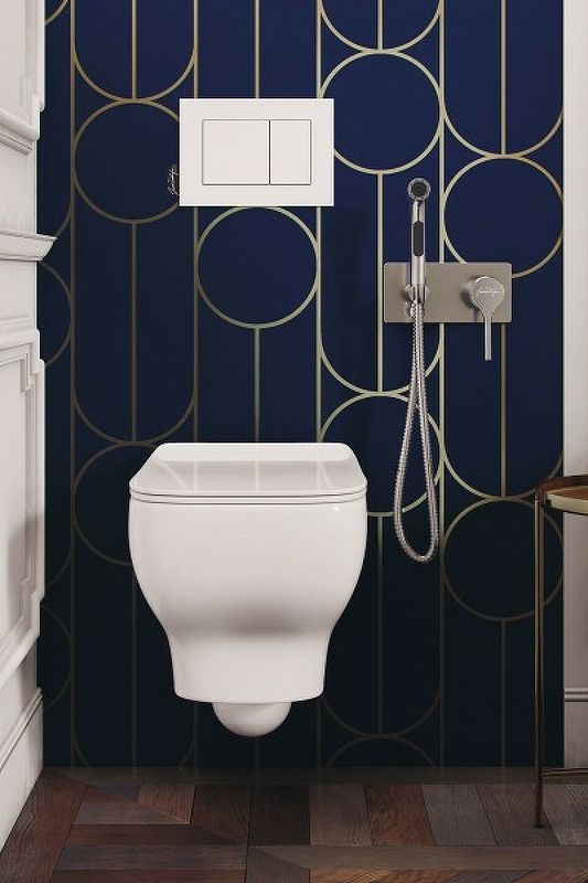 Гигиенический душ Elate французской компании Jacob Delafon станет превосходным вариантом для малогабаритного санузла. Он изготовлен из латуни, не подверженной негативному воздействию внешней среды. На хромированной поверхности не образуются разводы и потеки, а известковый налет легко удаляется при вытирании насухо. Изделие сохраняет свой глянец даже спустя долгое время эксплуатации. Пластиковая лейка оснащена эргономичной антискользящей кнопкой, что обеспечивает удобство управления подачей воды. Металлический шланг в двойной оплетке долговечен