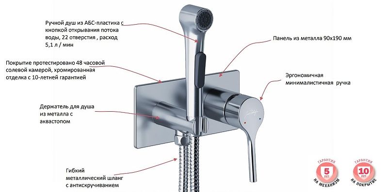 • Покрытие протестировано 48 часовой солевой камерой, хромированная отделка с 10-летней гарантией
