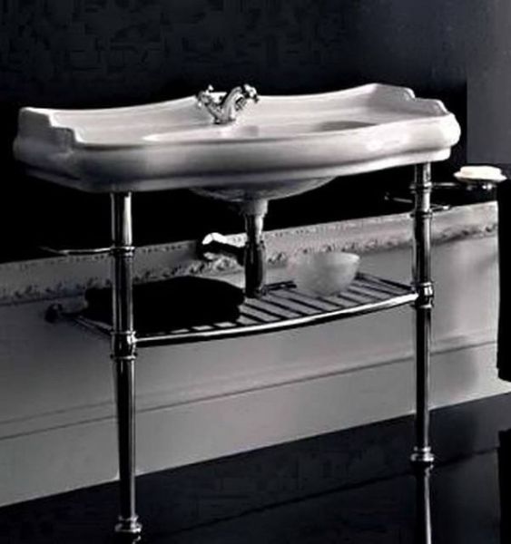 Консоль под раковину Kerasan Retro 109301 100 смKerasan Retro 730090 Металлическая консоль с полочкой, для раковины Retro 1050. Возможные варианты цветовой отделки: 90 - хром; 91 - золото; 93 - бронза.