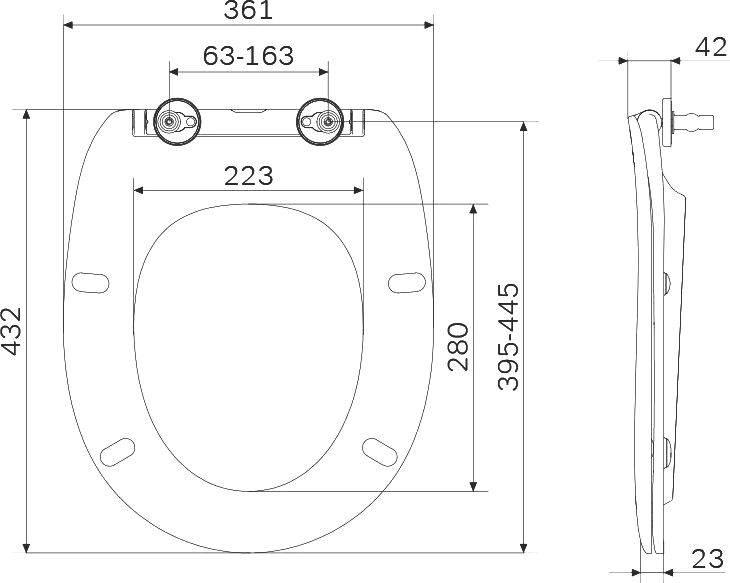 Быстросъемное сиденье из дюропласта с механизмом плавного закрывания в актуальном тонком дизайне. Материал сиденья
