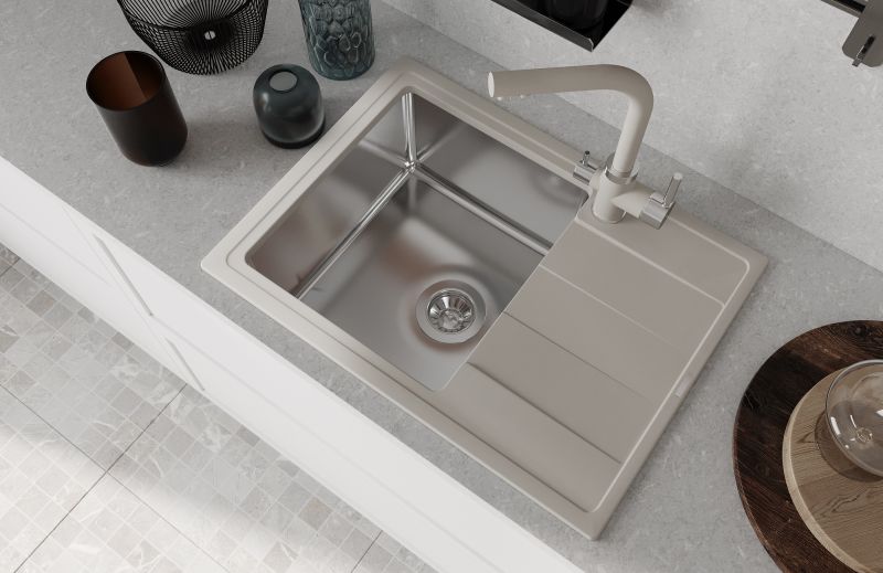 Комбинированная врезная мойка для кухни Флорентина модель Комби 650 выполнена из искусственного камня и нержавеющей стали (1 мм).