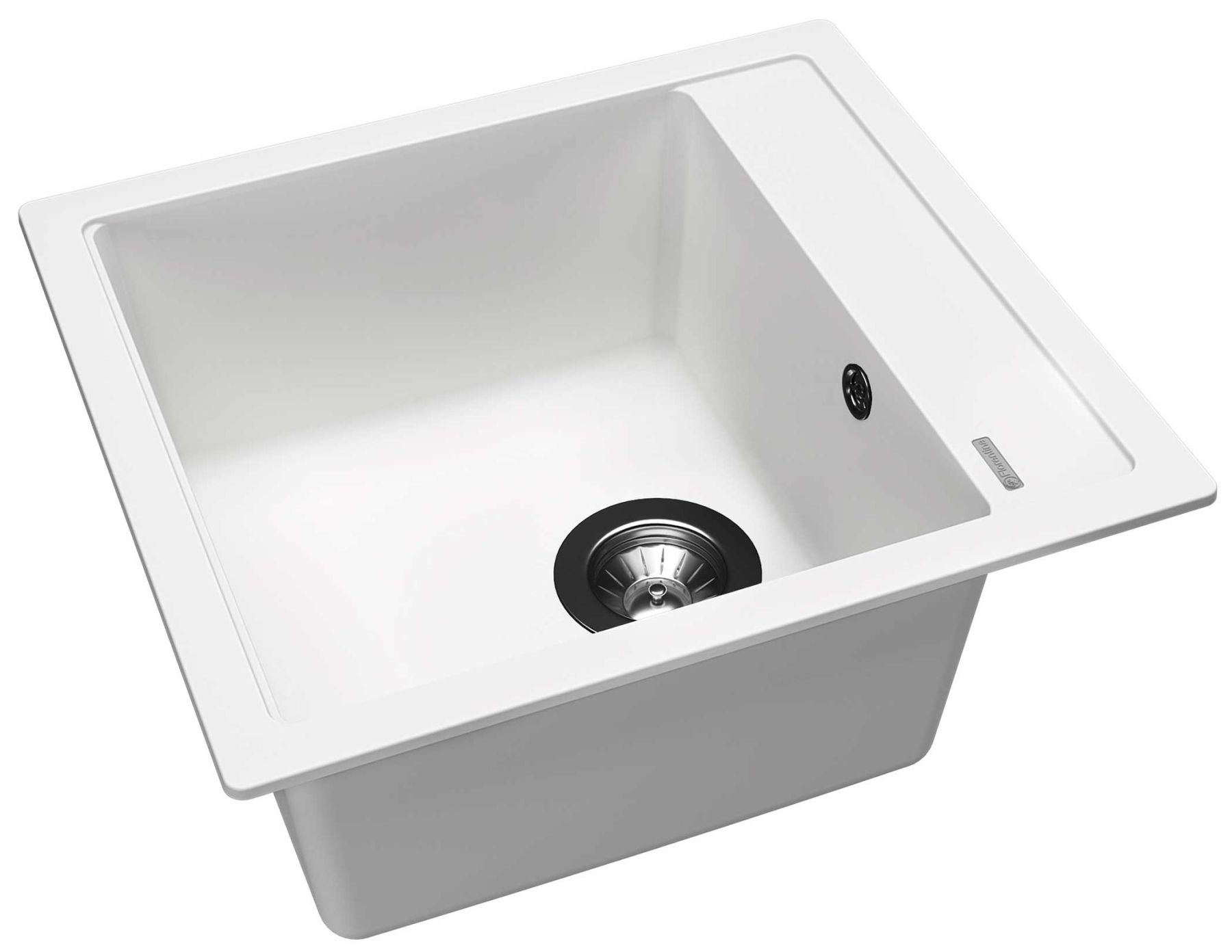 Мойка поставляется с полным комплектом арматуры, сифон с переливом, выпуск, крепеж, шаблон (трафарет) для удобного выреза на столешнице.