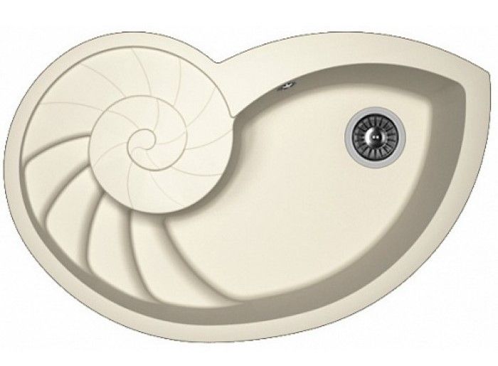 Необычная кухонная мойка, напоминающая форму раковины Наутилус