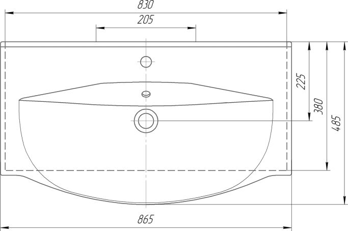 Полукруглая форма раковины оптимальных размеров: шириной 86.5 см, глубиной 48.5 см, высотой 12 см, способствует комфорту использования и монтажа. Современный стиль, в котором выполнена раковина передается во всех элементах данной модели. Материалом, из которого произведена раковина является фаянс, данный материал отличается максимально гладкой поверхностью, и абсолютной гигиениченостью.