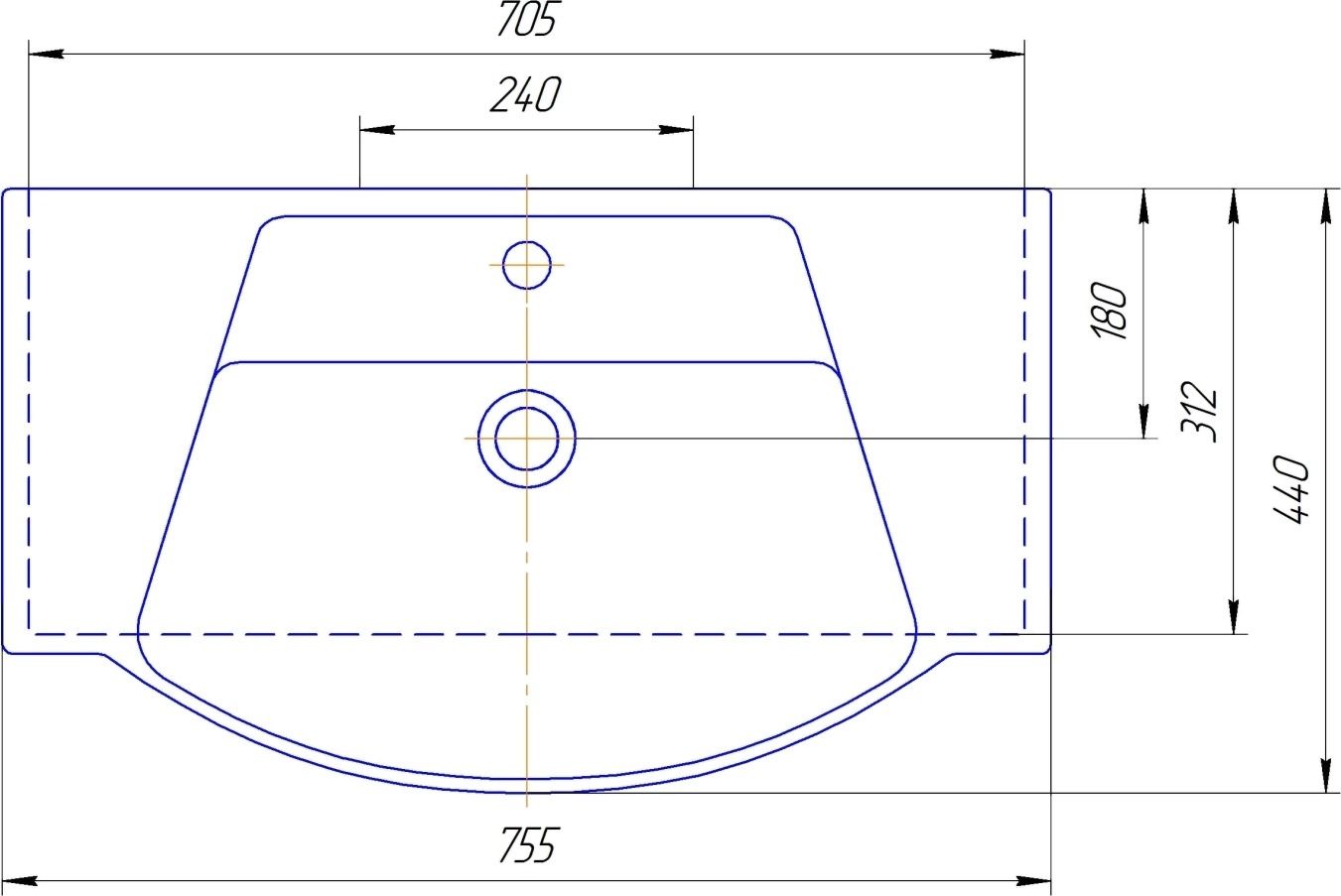 Полукруглая форма раковины Kirovit Монро оптимальных размеров: шириной 75.5 см, глубиной 44 см, высотой 16 см, способствует комфорту использования и монтажа. Современный стиль, в котором выполнена раковина Kirovit передается во всех элементах данной модели. Материалом, из которого произведена раковина является фарфор, данный материал отличается максимально гладкой поверхностью, и абсолютной гигиениченостью.