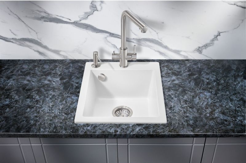 Кухонные мойки MILACIO — эталон стиля и качества даже для самых искушенных ценителей дизайнерской сантехники.Каменная врезная прямоугольная мойка для кухни MILACIO Murcia 42 Cuarzo (MC.77042), выполненная в белом матовом цвете, воплотила в себе лучшие особенности: безупречный вид, лаконичный дизайн, прочность конструкции и комфортное использование. Раковина изготовлена из высококлассного кварцевого композита — смеси частиц кварца и полиэфирных смол — красивого и современного материала, обладающего уникальной прочностью. Искусственный камень устойчив к любым воздействиям — царапинам, ударам, высоким и низким температурам (не боится кипятка и горячей посуды), бытовой химии, пищевым красителям, свету и загрязнению. Даже спустя годы изделие не потеряет цвет и форму и будет должным образом выполнять свои функции. Кухонная кварцевая мойка достаточно компактна, чтобы лучшим образом использовать пространство в небольшой комнате. Размер компенсируется глубокой чашей квадратной формы — в нее поместятся сразу несколько комплектов посуды. Благодаря правильной геометрии мойки капли не разбрызгиваются в стороны, а специальное водоотталкивающее покрытие не дает воде растекаться по поверхности, что сводит загрязнение к минимуму.При этом уход за раковиной достаточно прост: пятна легко убираются чистящими средствами — без подтеков и разводов.