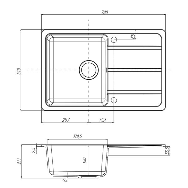 Размеры: 780х510х211 ммКлассическая мойка из литого мрамора с одной чашей и крылом. Покрытие Gelcoat обеспечивает высокую устойчивость к механическим воздействиям, которым подвергается поверхность мойки в процессе эксплуатации. Является стойким к большинству агрессивных и красящих веществ. Мойка обладает высокими бактерицидными свойствами и является экологически чистым изделием. Устойчива к резким перепадам температур.