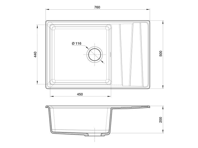 Мойка кухонная GranFest Графит Level LV--760 L граф