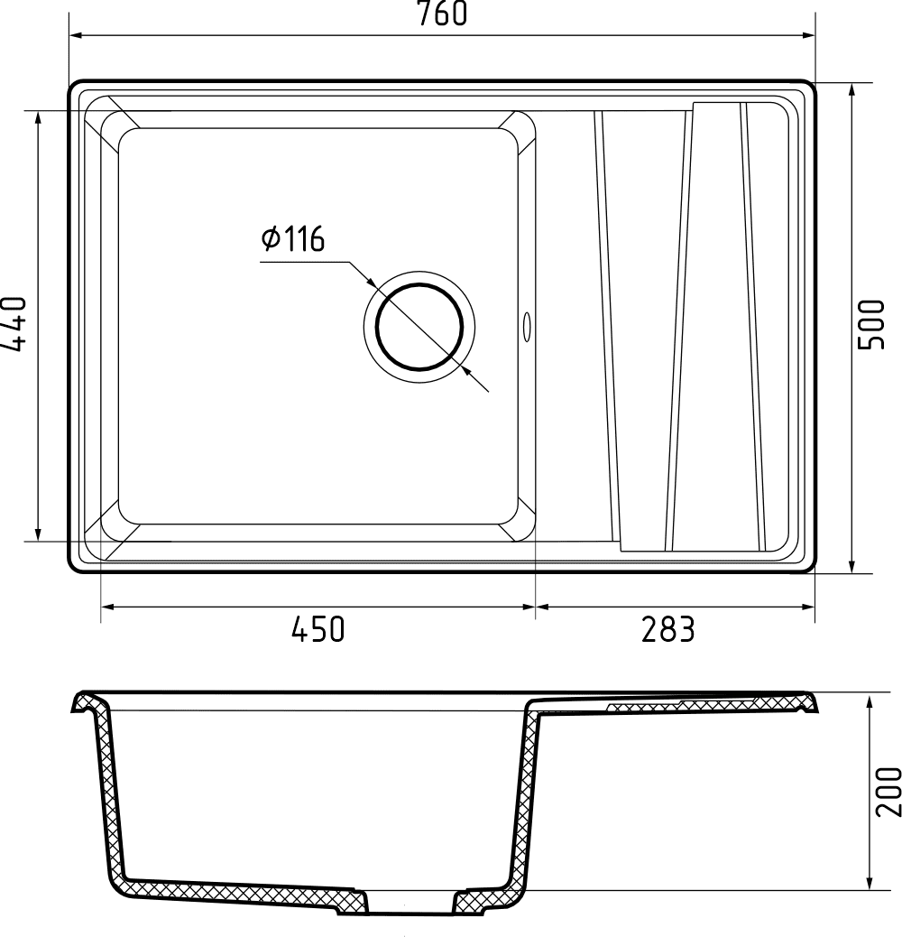 Мойка кухонная GranFest LEVEL LV-760L иней