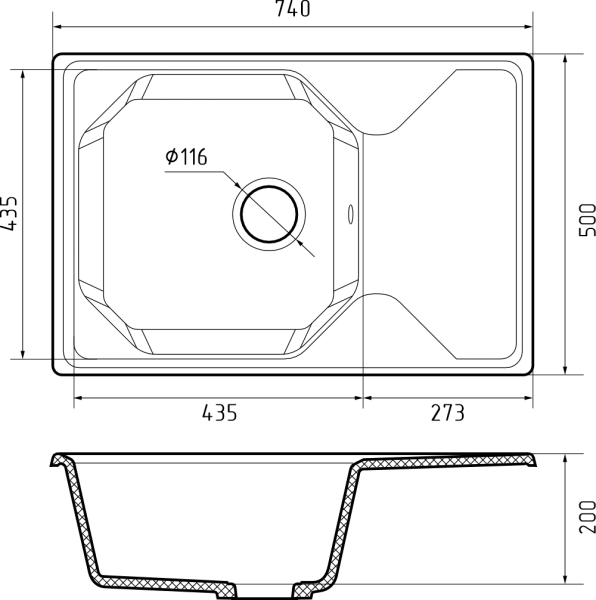 Мойка кухонная GranFest UNIQUE U-740L серый
