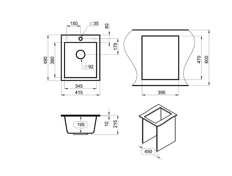 Мойка кухонная Granula Kitchen Space 4201, ГРАФИТ