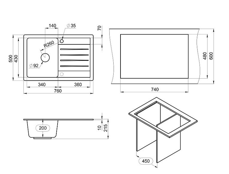 Мойка кухонная Granula Standart 7602, ЧЁРНЫЙ