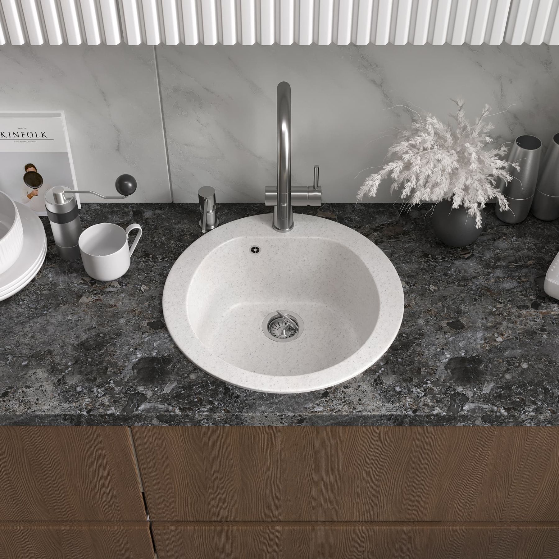 Удобная вместительная мойка подходит для установки как в угловой шкаф кухни, так и в прямые модули.