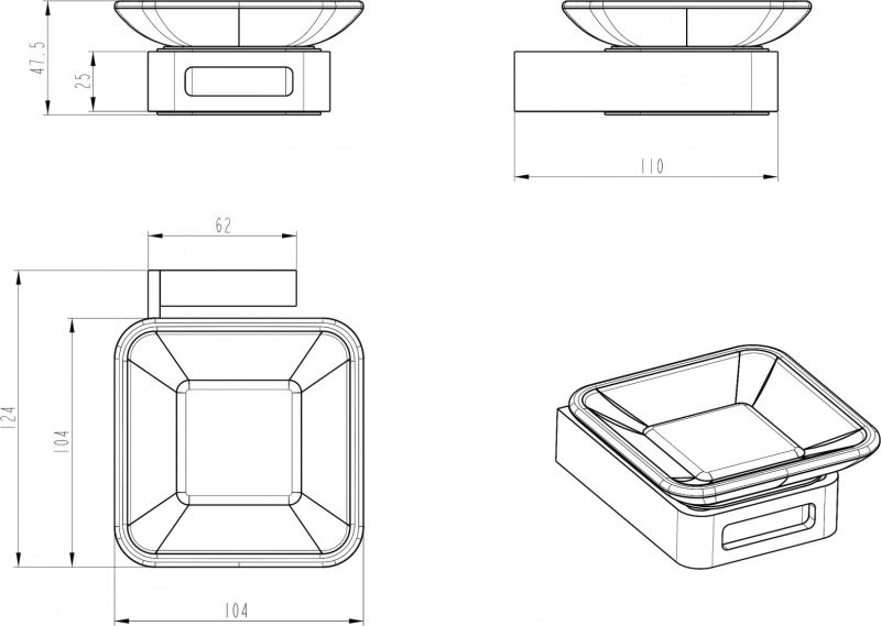 Мыльница Boheme Q 10943-B прекрасно впишется в дизайн любой ванной комнаты, будь то компактная ванная в многоквартирном доме или большой санузел в загородном коттедже. Коллекция Q выполнена в эксклюзивном дизайнерском решении в лучших традициях современного стиля.Boheme предлагает безупречное, сочетание материалов (латунь / стекло) высокого качества, с полным отсутствием вредных для здоровья веществ. Хром, основной цвет исполнения Boheme Q, отлично подходящий большинству дизайнерских решений. Важные размеры товара: ширина 10.4 см, глубина 12.4 см, высота 4.75 см. Квадратная форма 10943-B прослеживается во всех линиях и придает аксессуару неповторимый стиль. Мыльница размещается в самом удобном положении на стене благодаря подвесному способу установки.Италия родина бренда Boheme, вся продукция производится со строгим соблюдением всех стандартов, благодаря чему можно быть абсолютно уверенным в надежности и высоком качестве. Мыльница Boheme Q 10943-B создаст уют и комфорт в любом дизайнерском решении, и ванная комната обретет неповторимый элемент интерьера.