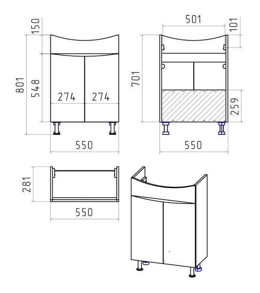 - Тип:тумба под раковину