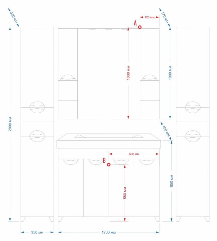 1. Вместительной прямой тумбой с просторными отделениями за четырьмя распашными дверками. Модель поставляется в комплекте с прямоугольной доломитовой раковиной-столешницей MISTY 120 с одной чашей или раковиной STEP 120 с двумя чашами.