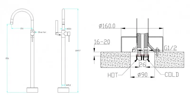 - Монтаж: напольный
