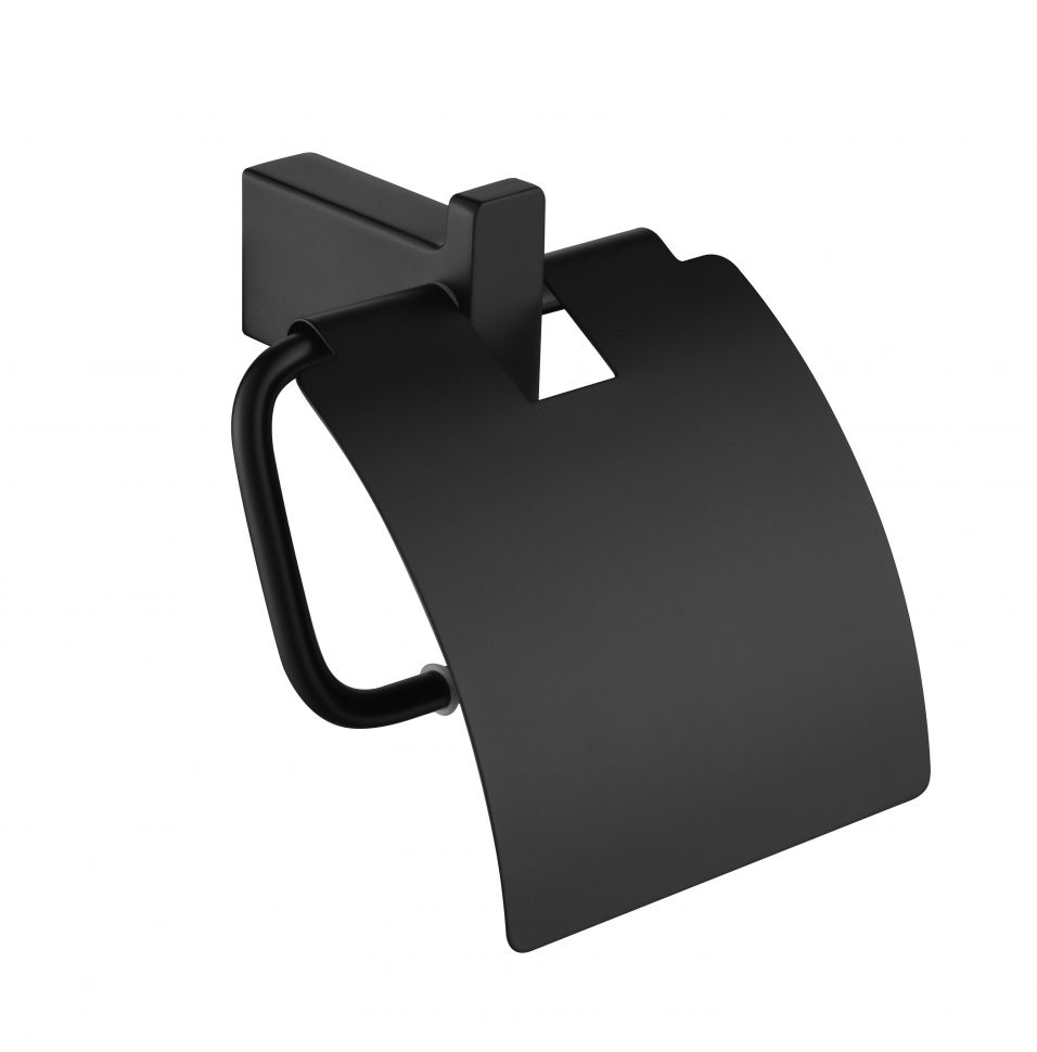 Настенный бумагодержатель с крышкой Grocenberg AC0029 (Черный матовый)