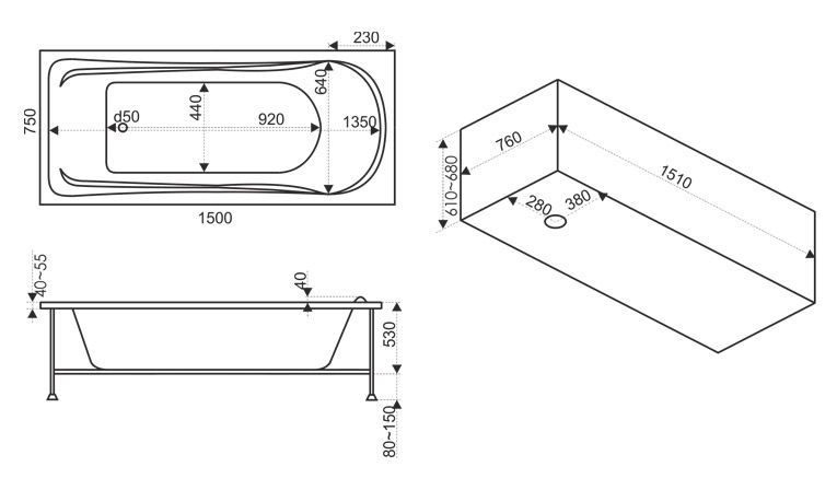 Панель фронтальная для ванны Bas Бриз 150
