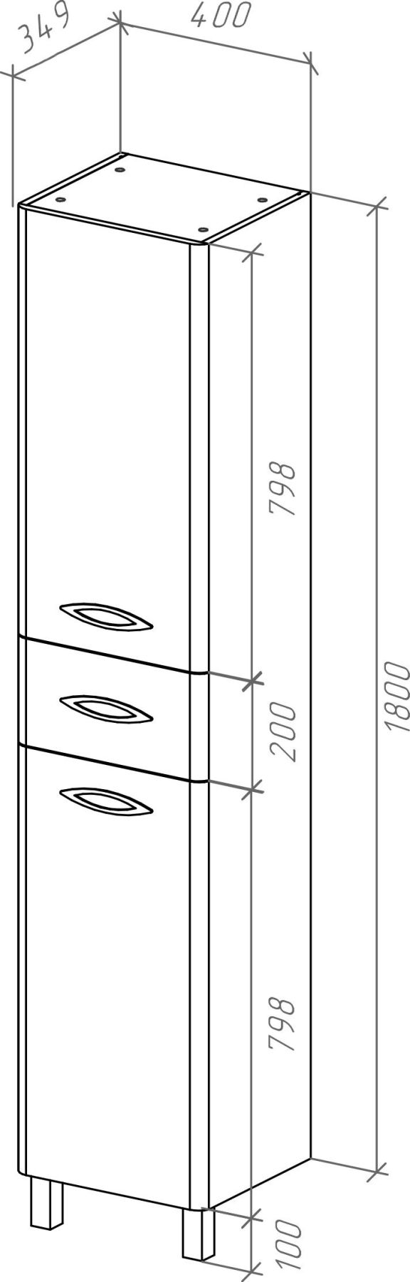 Пенал Bellezza Джела 40см правый белый 00000011254