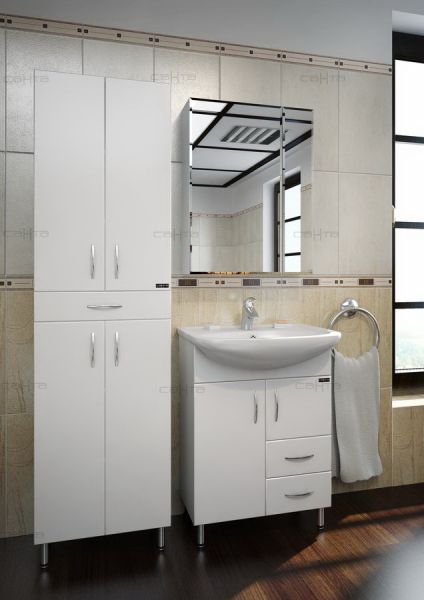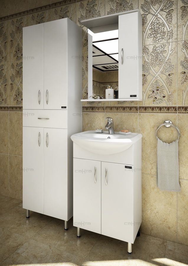 Шкаф-пенал СанТа отличное решение для создания комфортной атмосферы в любой ванной комнате. Напольный способ установки производится непосредственно на пол, при этом конструкция максимально устойчива при серьезных физических нагрузках. В производстве используют только качественные влагостойкие материалы (ВЛДСП), в составе которых полностью отсутствуют опасные вещества. Серия Вегас отличается превосходным дизайном с соблюдением всех существенных элементов современного стиля. Основным цветом, в котором выполнен шкаф-пенал СанТа является белый, безупречно впишется в любой дизайн проект. Шкаф-пенал предусматривает удобную и вместительную систему хранения, состоящую из дверей.Страной бренда СанТа является Россия, все товары производятся с выполнением соответствующих стандартов качества, что позволяет быть полностью уверенными в долговечности и надежности. Шкаф-пенал СанТа поможет сделать уютным любой интерьер и создать идеальную ванную комнату.