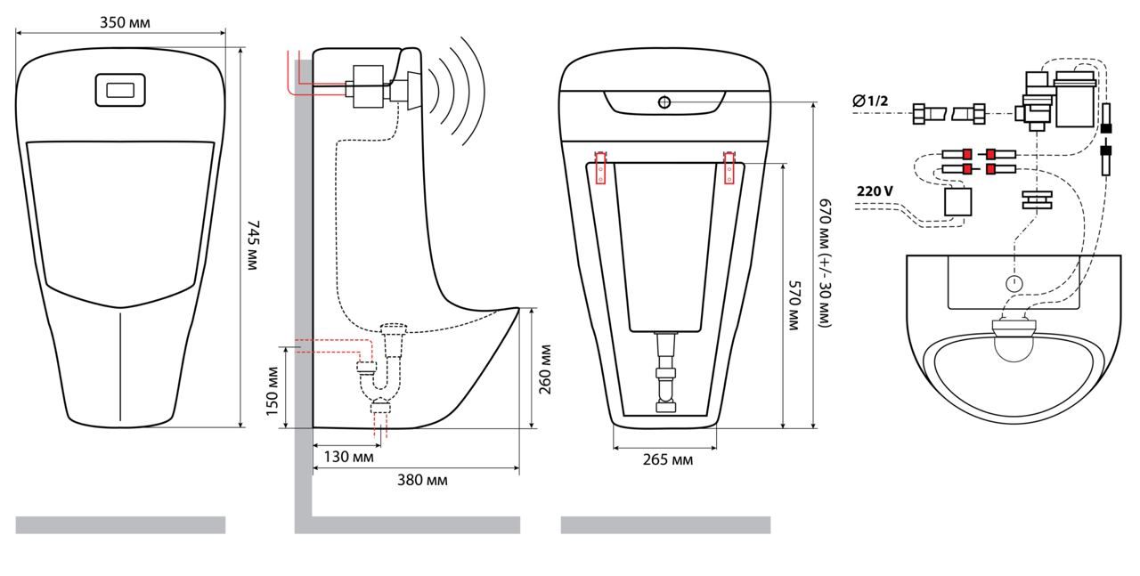 Писсуар подвесной Laguraty Sensor AR 636 белый купить