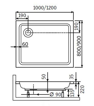Акриловый поддон для душа RGW STYLE PR 900х1200х220 Подробнее