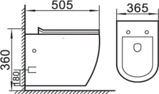 • Прилегание унитаза к стене: