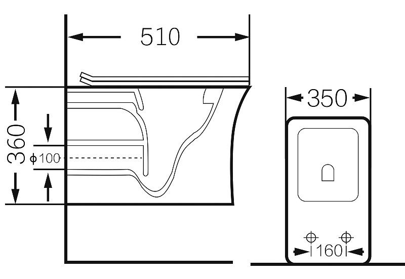 • Прилегание унитаза к стене: