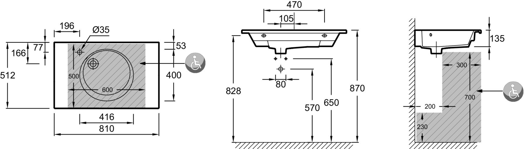 • Отверстия под смеситель: