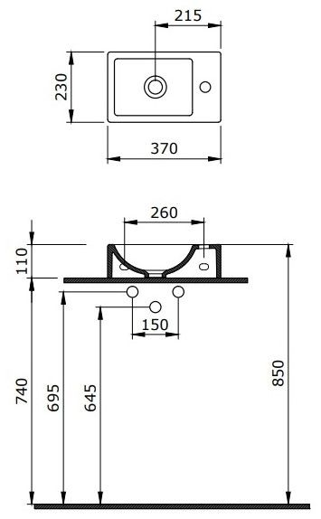 - Отверстия под смеситель:1