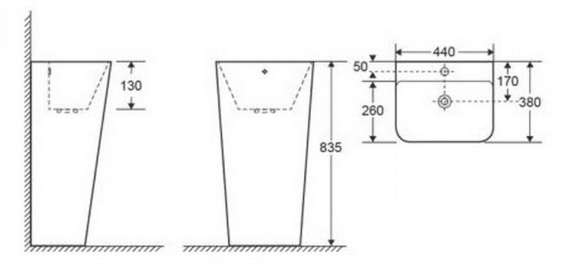 • Отверстия под смеситель: