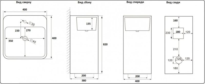 • Отверстия под смеситель: