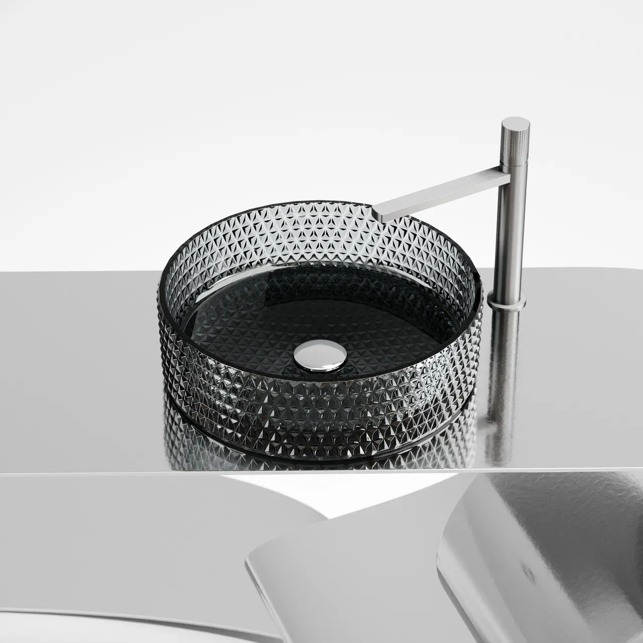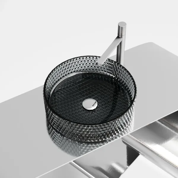 Умывальник чаша накладная круглая (цвет чёрный) Cristal 360*360*112мм