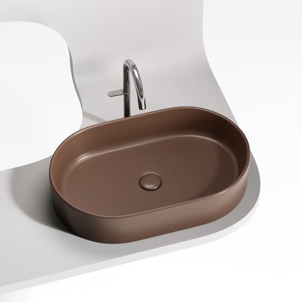 Умывальник чаша накладная овальная (цвет Темно-Коричневый Матовый) Element 608*385*122мм