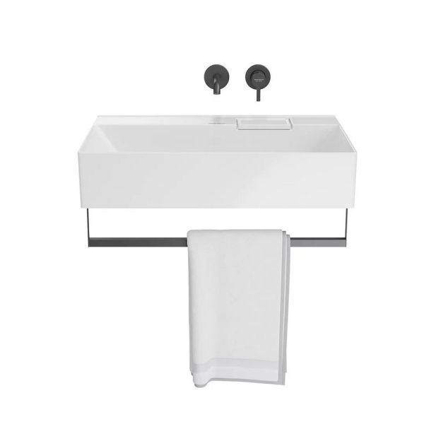 Раковина исполнена в современном геометричном дизайне, чистота которого усилена благодаря Beauty Drain — технологии невидимого слива, который смещён из центра чаши к её задней стенке. При этом отверстие перелива спрятано в небольшой бокс, закрытый керамической крышкой. Это делает наклонное дно чаши идеально ровным и упрощает процесс уборки. Данная модель раковины не содержит отверстия под смеситель и предусмотрена для использования с настенным смесителем. Установка раковины возможна как на тумбу LOGICA соответствующего размера, так и в подвесном варианте без мебели, в том числе с полотенцедержателем LOGICA.