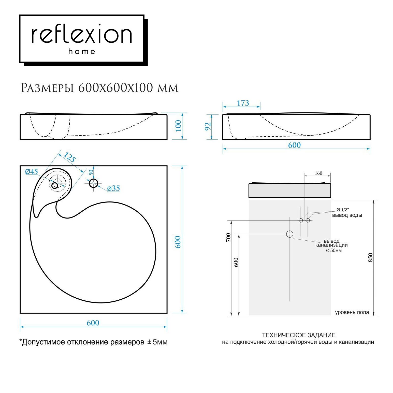 Раковина Reflexion Beta RF6060BT белая 60x60 Подробнее