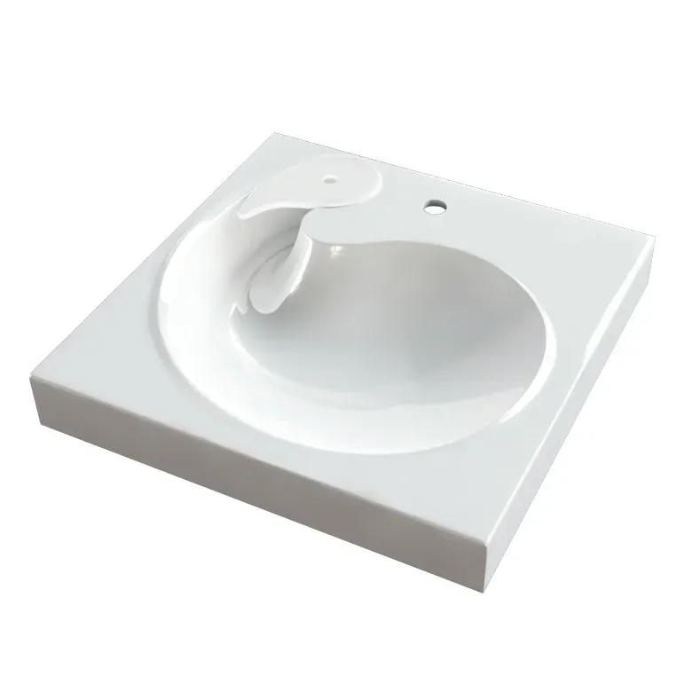 Компактный умывальник для ванной из литьевого мрамора не склонен к царапинам, его поверхность ремонтопригодна, он не имеет пор, обладает идеальной гладкостью и глянцевым блеском.