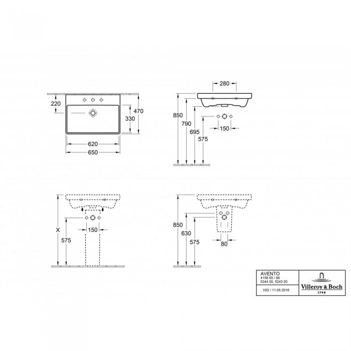 Раковина Villeroy Boch Avento 41586501 65 см купить