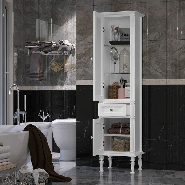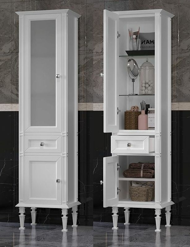 Шкаф-колонна Opadiris Кантара 46 L 00-00004353 Белый матовыйВыглядит роскошно и отличается богатством декорированных элементов и элегантным шиком. Прекрасно дополнит современный интерьер ванной комнаты.Материал: высококачественная МДФ с глянцевой эмалью и оригинальным обрамлением из массива бука с серебряной патиной. При производстве используются только гипоаллергенные и экологически чистые материалы.