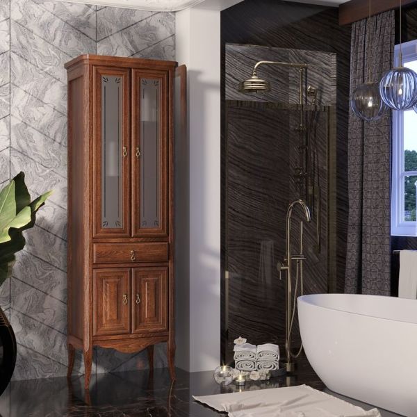 Шкаф-колонна Opadiris Лоренцо 55 00-00001803 Светлый орехВыполнен в классическом стиле с плавными изогнутыми формами и изящными слегка гнутыми ножками. Фасадные элементы украшены резными узорами, стекло матовое с узором.Ориентация: универсальная.