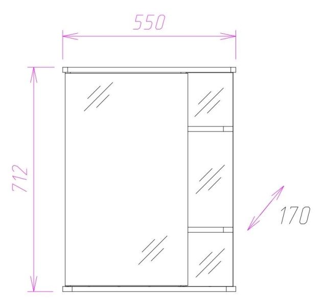 Корпус шкафа-зеркала выполнен из ЛДСП, фасад - из ЛДСП и ЛМДФ в пленке, устойчивых к механическим воздействиям, перепадам температур и высокой влажности.