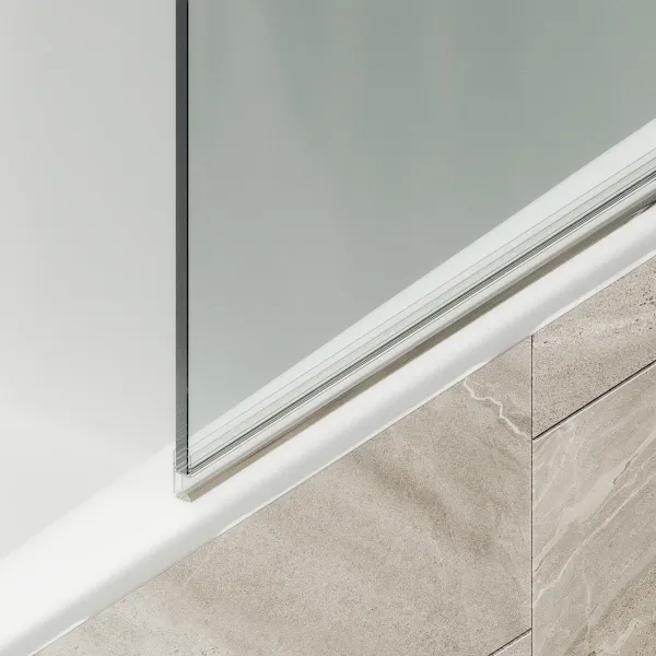 Монтаж осуществляется с помощью алюминиевого профиля, что обеспечивает надежность крепления и безопасность использования стеклянной перегородки для ванной. Также, шторка оснащена специальным уплотнителем, который предотвращает попадание воды на пол ванной комнаты, а также поворотным механизмом, что облегчает уход за сантехникой и делает использование ширмы максимально комфортным. Закаленное стекло, цвет Бесцветное, толщина 6 мм 1400х340 мм - 1 шт.