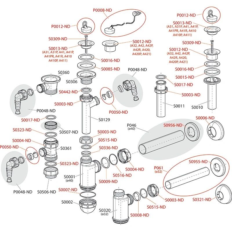 • Подключение к стоковой трубе Ø40 мм