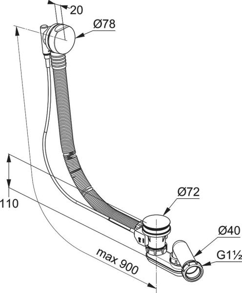 • с гибкой переливной трубой 950 мм