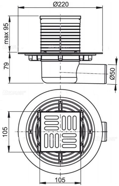 Сливной трап AlcaPlast 105 ? 105/50мм решетка - хром APV101 купить