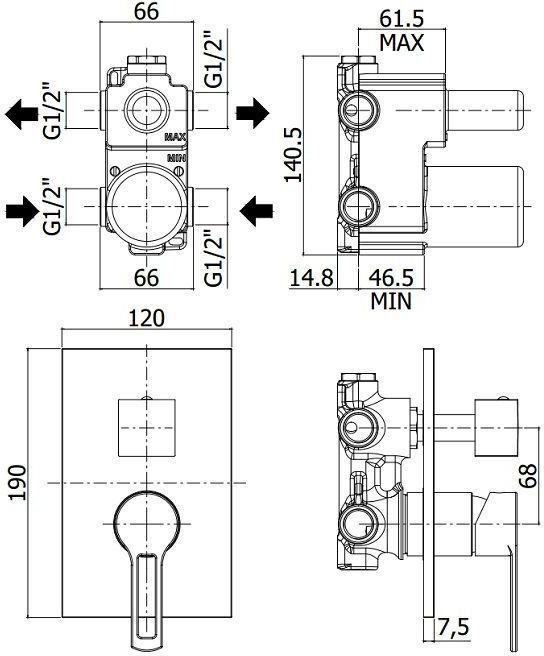 Смеситель встраиваемый для душа на 2 выхода с накладкой нерж сталь 120х190мм.девиатор-картридж, 2 положения+1 комбо, ХромСмеситель для душа Paffoni Ringo RIN018CR/M (с внутренней частью) предназначен для душа. Своим необычным дизайном и цветом он внесет в интерьер помещения особое настроение, подчеркнув его своеобразие. Он выполнен из надежного материала латунь/Нержавеющая сталь, который не подвержен коррозии, а потому прослужит без ремонтов. Модель является отличным примером сочетания высокого качества и привлекательной цены. Управление в смесителе предусмотрено однорычажное, что отвечает пожеланиям любителей такого типа смесителей. Высокую жизнеспособность и основательность смесителю гарантирует керамический картридж, отличительной чертой которого является продуманная конструкция - залог отменной работы в течение долгого времени. Не зря гарантия на смеситель – 5 лет, в течение которого производитель Paffoni заверяет в его бесперебойной работе. Форма излива в смесителе - нет, а тип - нет. При покупке учтите, что подводка у смесителя жесткая, что важно для его подключения.
