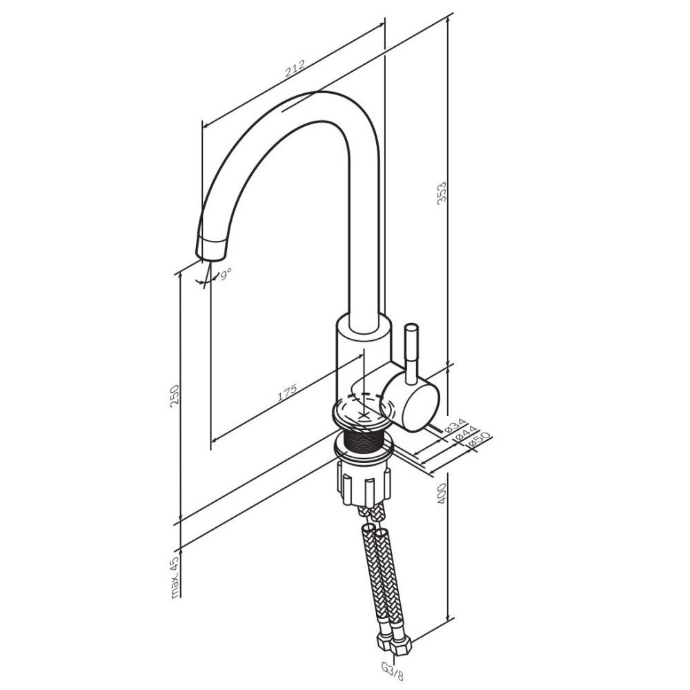 • Высота смесителя: