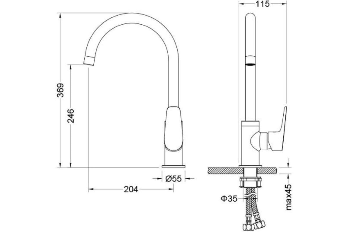 • Высота смесителя: