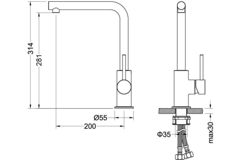 • Высота смесителя: